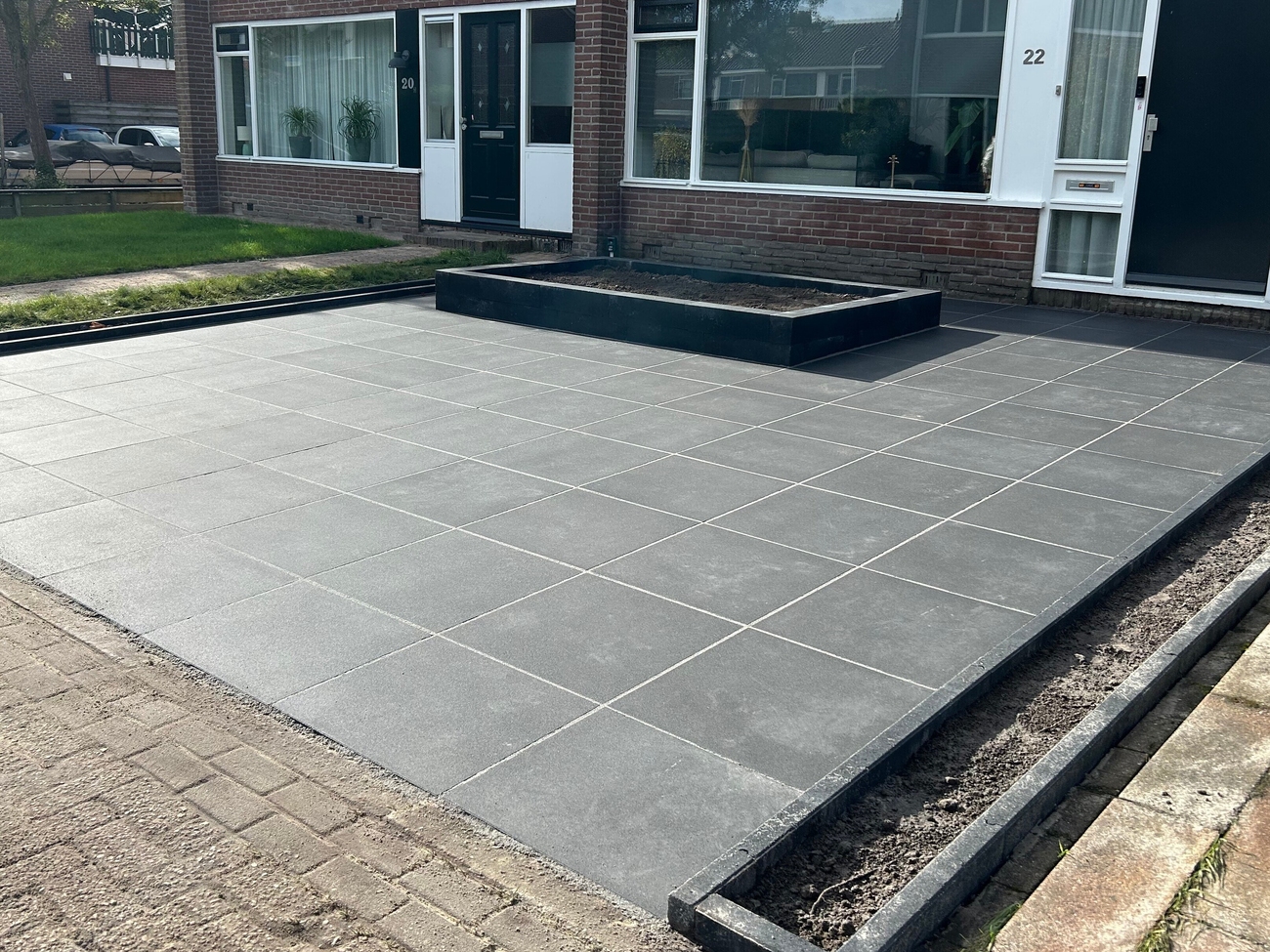 Het resultaat is een moderne voortuin die perfect aansluit bij de woning en de leefwensen van de bewoners.